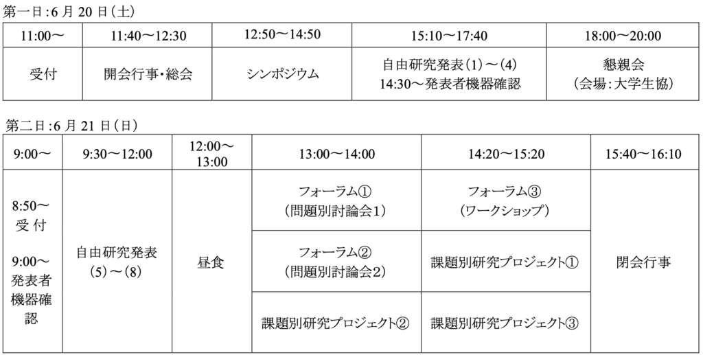 ※シンポジウム、問題別討論会、課題別研究プロジェクトの提案者等には、大会事務局から別途、連絡いたします。